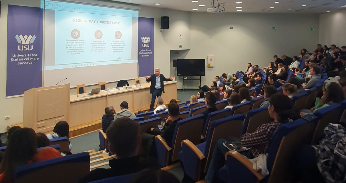 Joi, 18 aprilie a.c., Facultatea de Economie, Administraţie și Afaceri din cadrul Universității „Ștefan cel Mare” din Suceava a organizat Seminarul de perfecționare vocațională SmartFIN@ISF & Laboratorul Academic ASF, prin care și-a propus să prezinte provocările cu care se confruntă firmele în contextul actual, marcat de crize suprapuse, oportunitățile disponibile şi abordările comportamentale ale investiţiilor.