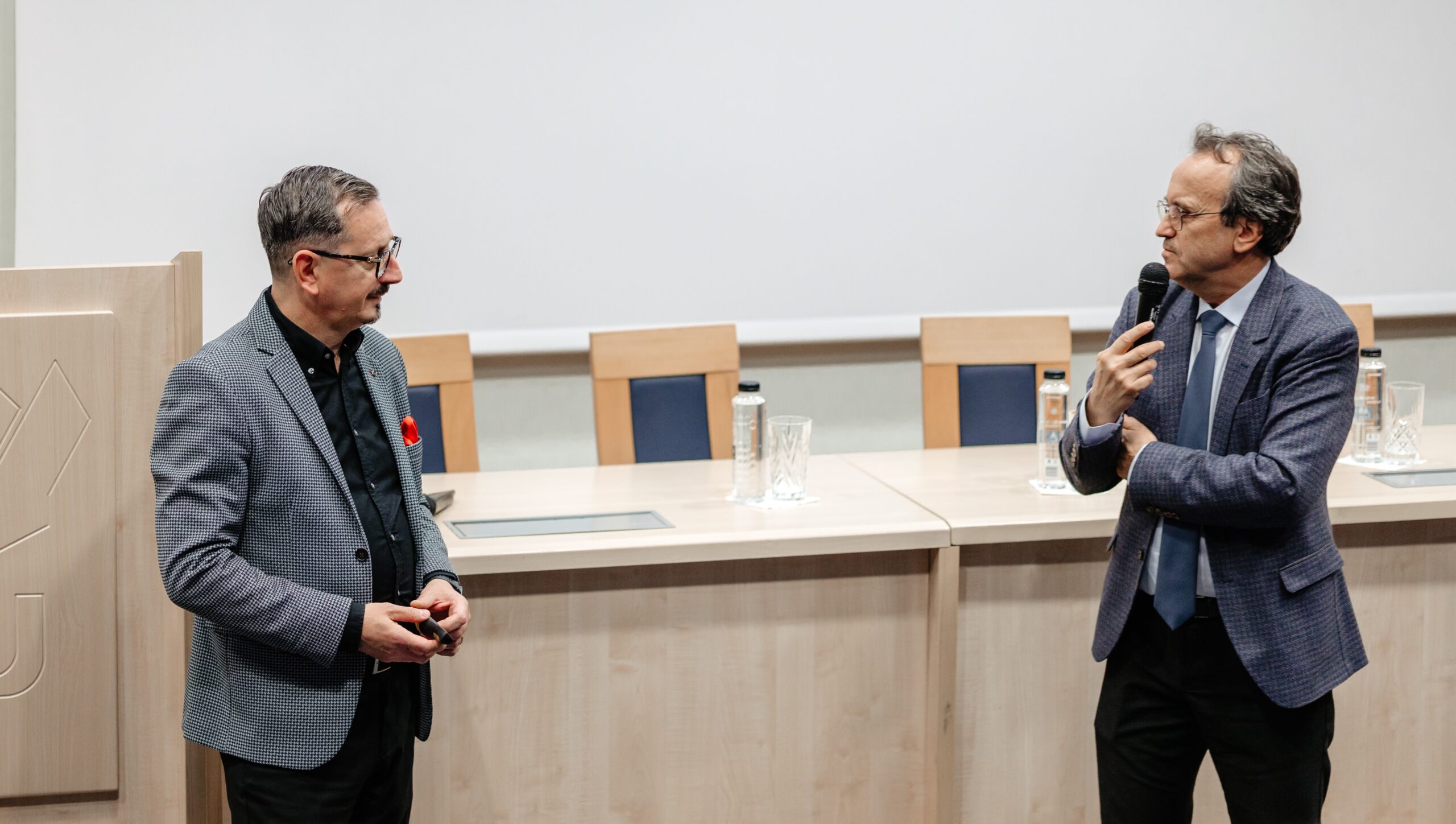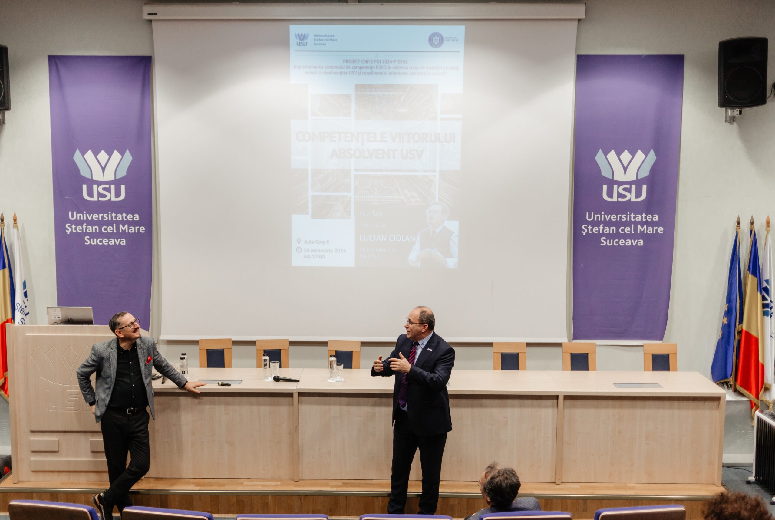 Specialist în politici publice și educaționale, în metodologia cercetării și în dezvoltarea competențelor formatorilor, ca și în aplicații ale (neuro)științelor cognitive în politicile publice și procesele de învățare, prof. univ. dr. Lucian CIOLAN a susținut o prelegere interactivă pe tema Au competențele „viitor”? Cum definim rezultatele învățării în condiții de incertitudine?, urmată de discuții și analize privind competențele viitorului student, cu aplicații pe situația concretă a studenților de la programele de studii de licență și masterat din USV.