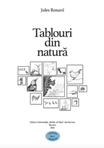 Colecţia „Traductio” a Editurii Universităţii „Ştefan cel Mare” din Suceava s-a îmbogăţit recent cu o traducere realizată de studenţii FLSC Cosmina Calancea, Adina Hîrgău, Daniela Bargan, Iulyia Todiruţ, sub coordonarea conf. univ. dr. Raluca-Nicoleta Balaţchi: Jules Renard, Tablouri din natură (ilustraţii originale de Ana şi Luciana Constantinescu, prefaţă de Raluca-Nicoleta Balaţchi şi postfaţă de Simona-Aida Manolache).