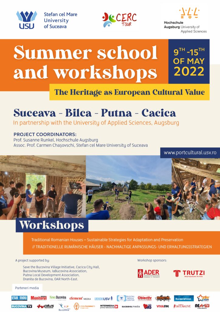 În perioada 09 – 15 Mai 2022, Universitatea „Ștefan cel Mare” din Suceava, prin intermediul Centrului de Resurse și Cercetări în Turism al USV, în colaborare cu Universitatea de Științe Aplicate din Augsburg, Germania, derulează în Suceava, Bilca, Putna și Cacica, ediția 2022 a Școlii de vară PORT Cultural, cu tema generală Patrimoniul: valoare culturală europeană. Ediția de anul acesta pune în lumină un deceniu de când USV, prin activitățile de cercetare derulate și prin munca voluntarilor, a devenit un actor activ în domeniul conservării patrimoniului local și național. Proiecte precum: HE-CROSS, Heritage sau PORT Cultural au reprezentat, cu succes, munca depusă în toți acești ani.