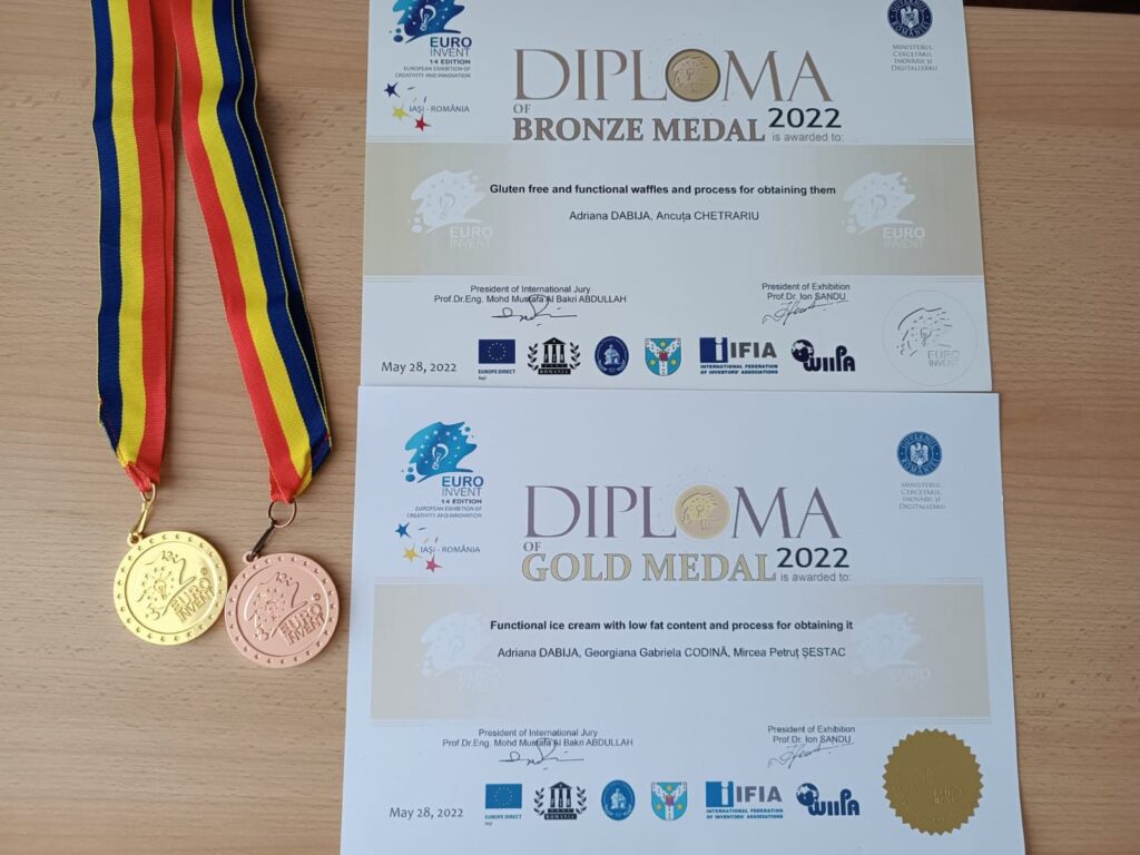 Înghețată funcțională cu conținut redus de grăsime și procedeu de obținere a acesteia, inventatori: Mircea Petruț Șestac, student în anul IV, coordonat de prof. Adriana Dabija și prof. Georgiana Gabriela Codină, care a primit Medalie de aur,
