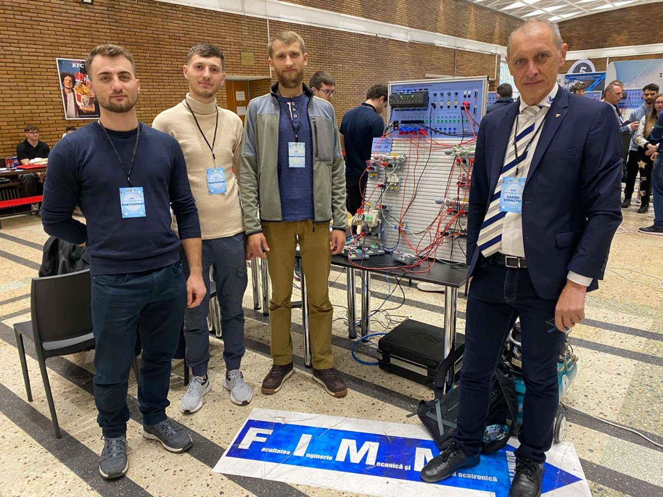 - Pentru prima probă, s-a utilizat o platformă educațională (ADVANCED E-PNEUMATIC SMC TRAINING SYSTEM) destinată instruirii în domeniul automatizărilor industriale. Sistemul include elemente pneumatice și electro-pneumatice, precum cilindri pneumatici, senzori, distribuitoare pneumatice și un controler PLC Finder, permițând realizarea și testarea circuitelor pneumatice complexe. Datorită structurii modulare, aceasta oferă posibilitatea configurării și controlului proceselor pneumatice, facilitând învățarea practică a principiilor de comandă și execuție. În ziua concursului, studenții au avut la dispoziție 90 min pentru rezolvarea tuturor probelor.
