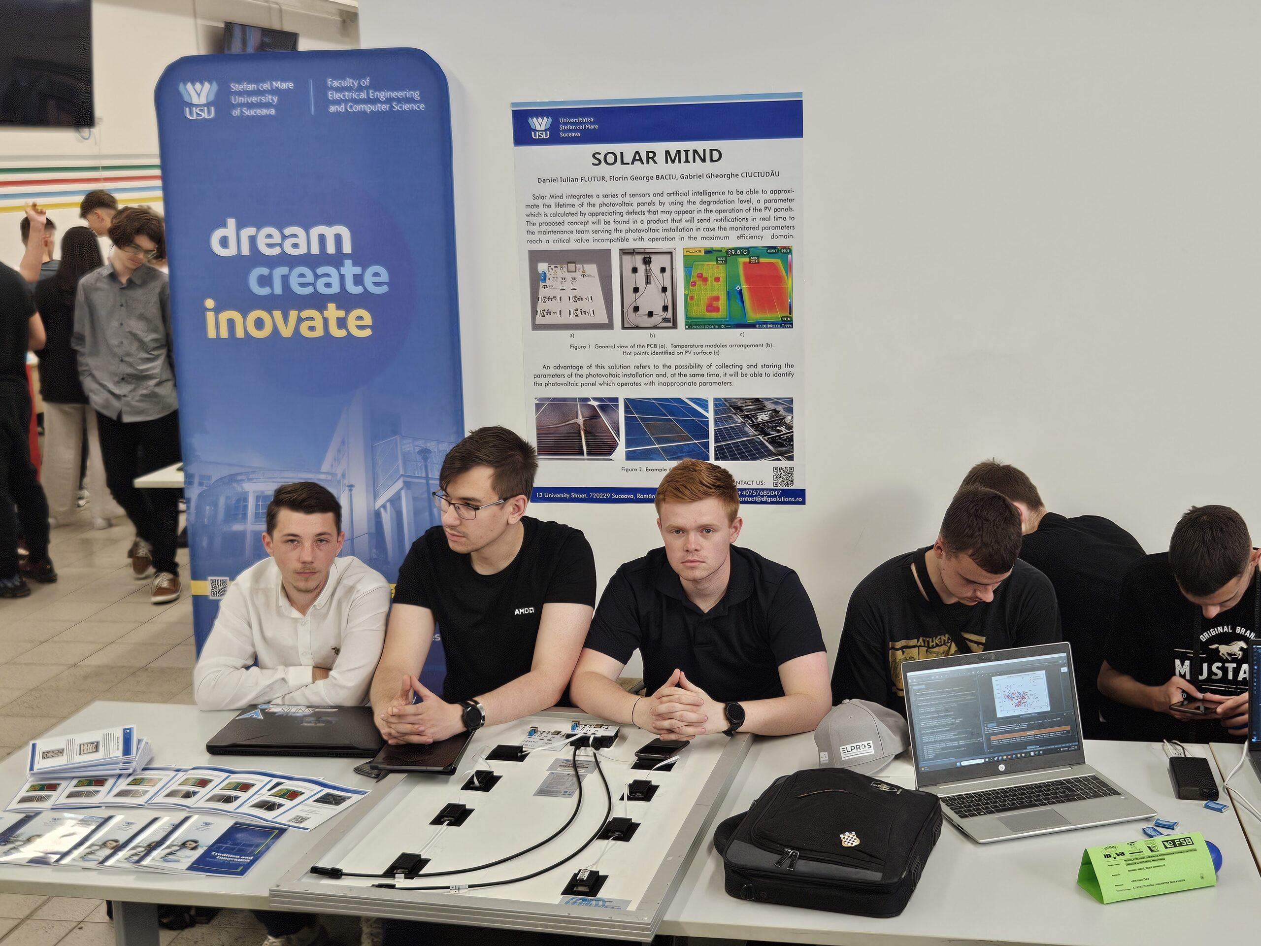 Informatice. Aceștia au prezentat un proiect intitulat Solar Mind, un concept nou, dedicat panourilor fotovoltaice, care integrează o serie de senzori și inteligența artificială pentru a putea aproxima durata de viață a acestora prin nivelul de degradare identificat și pentru a sesiza posibile defecte ce pot apărea în funcționarea lor. Conceptul propus se va regăsi într-un produs ce va trimite notificări în timp real către echipa de mentenanță care deservește instalația