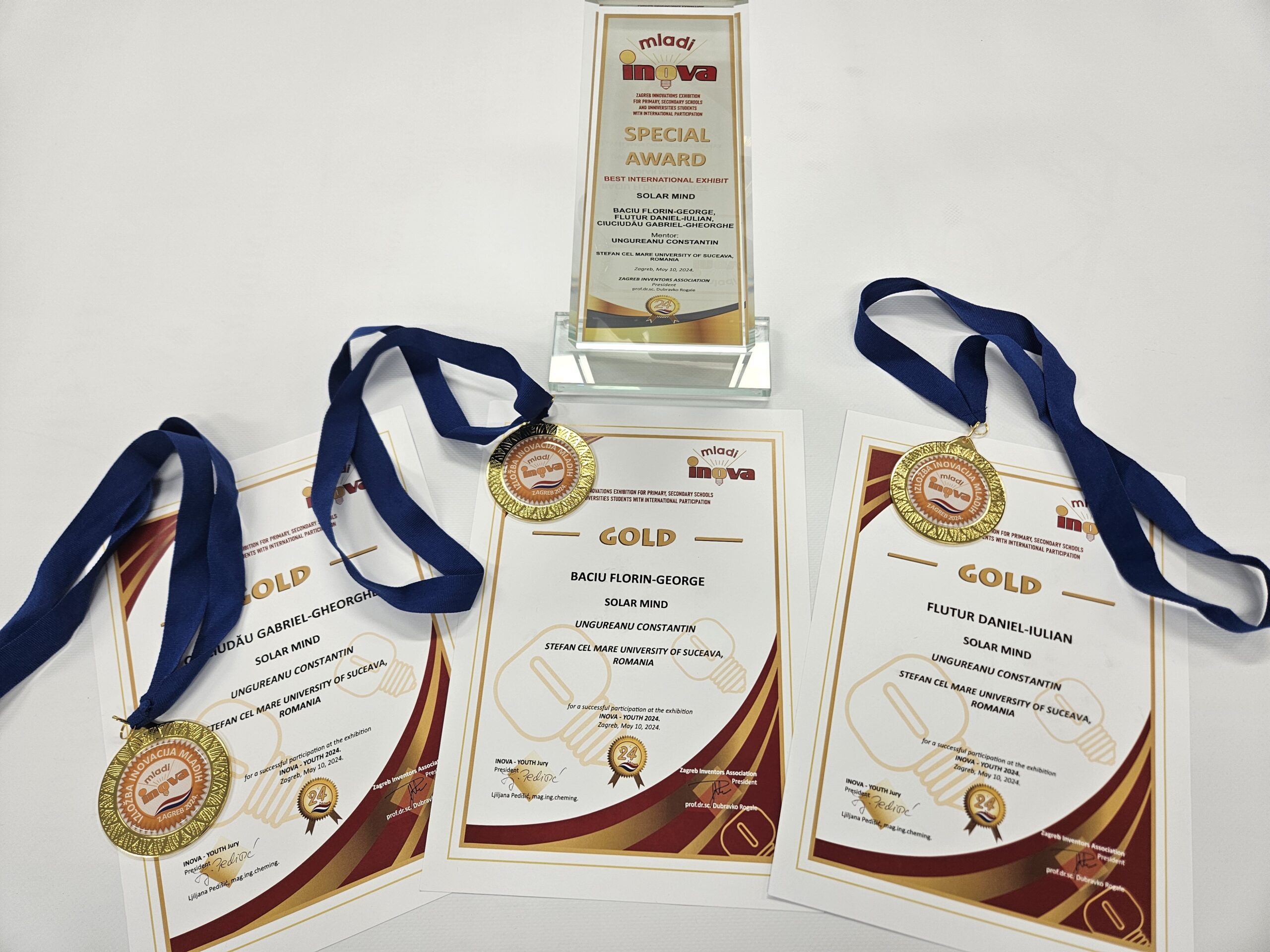 La finalul procesului de jurizare, proiectul Solar Mind, propus şi dezvoltat de cei trei studenţi suceveni, a fost premiat cu medalie de aur şi premiul special al Salonului INOVA-YOUTH.